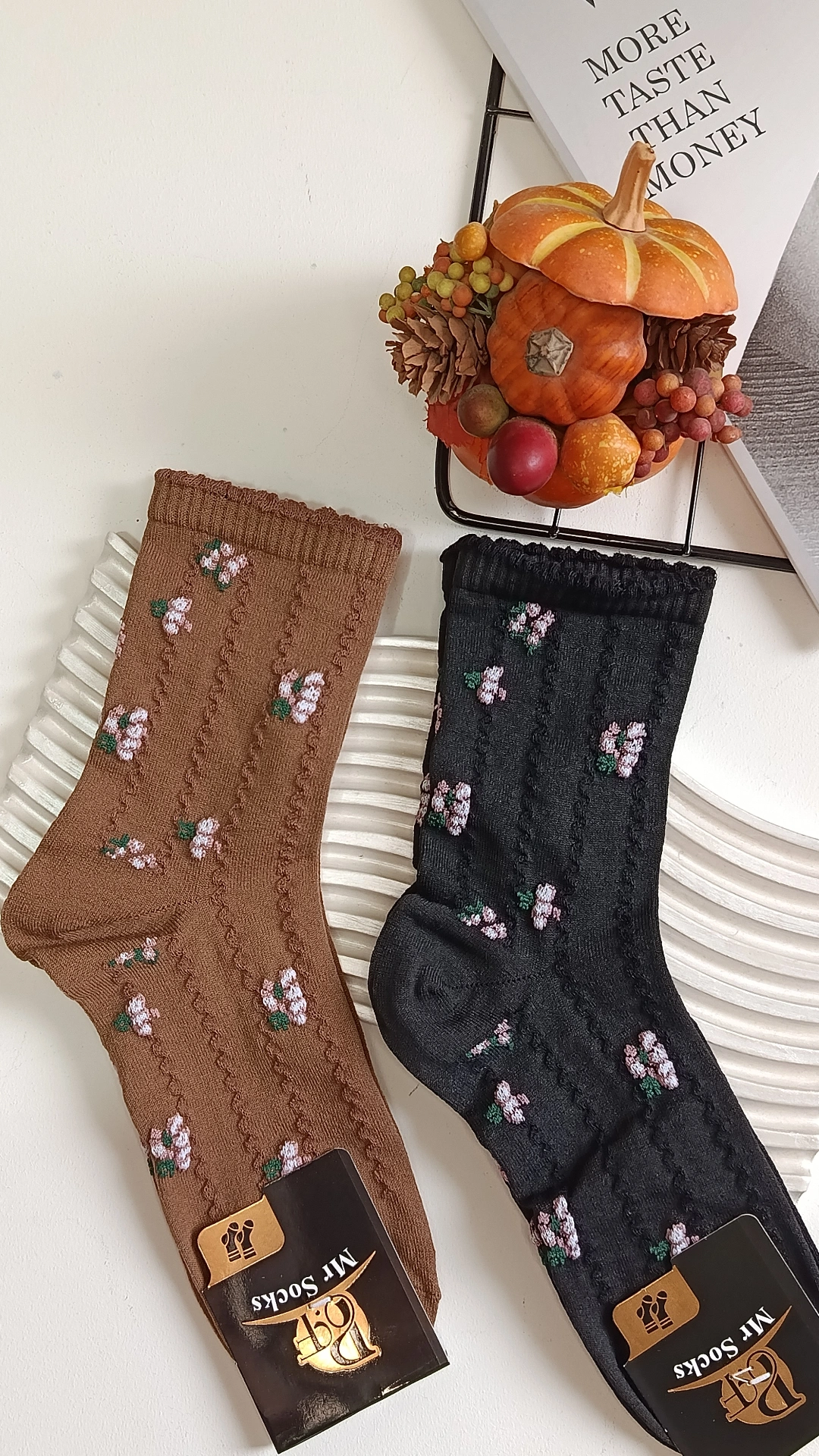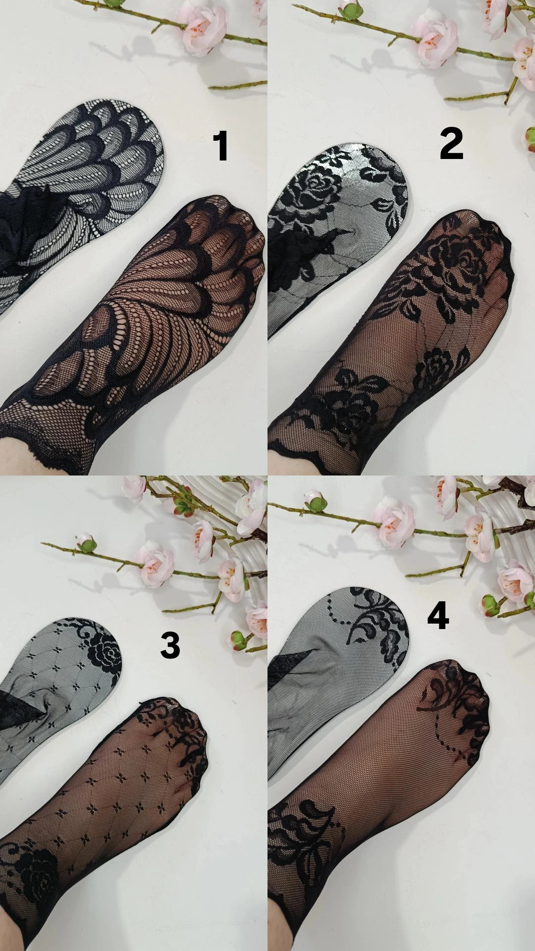 جوراب مچی زنانه خامه دوزی مشکی تک گل