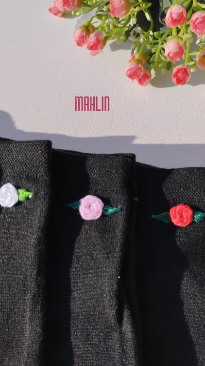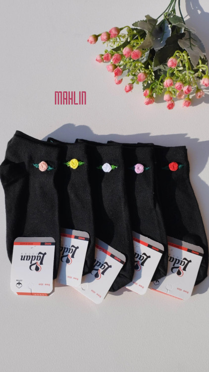 جوراب مچی زنانه خامه دوزی مشکی تک گل